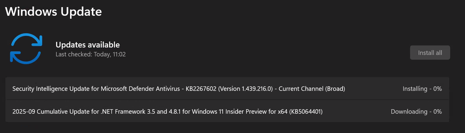 The Cloud PC may require multiple update cycles and restarts to fully receive Insider builds.
