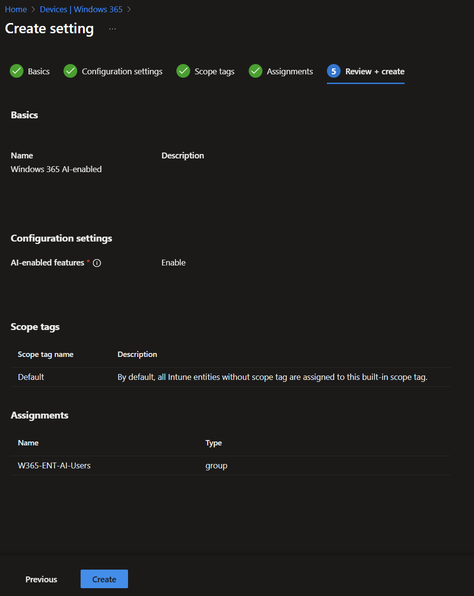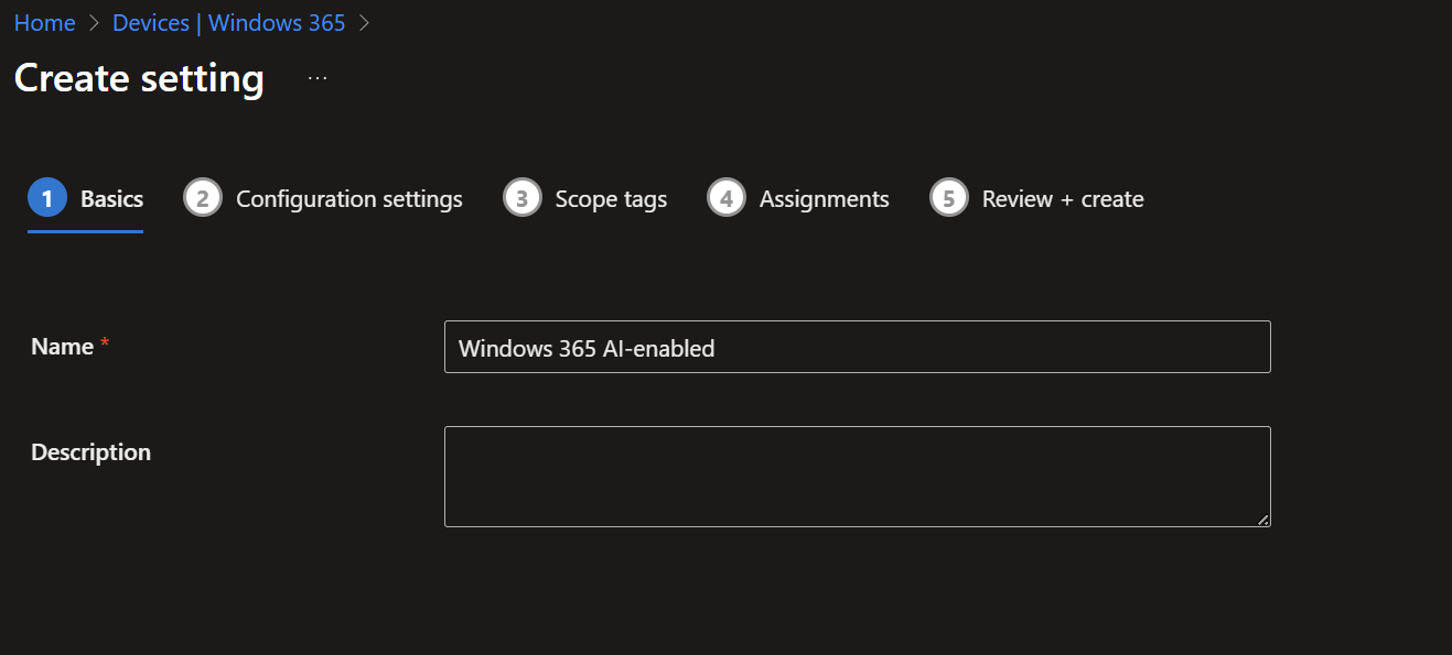 Give the policy a clear name such as Windows 365 AI-enabled.