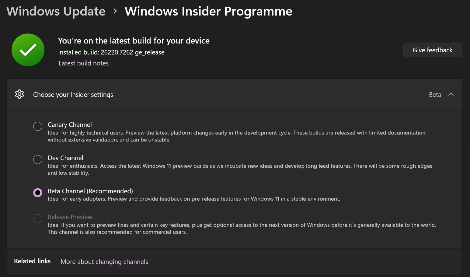 - Select Beta Channel under Pre-release channel